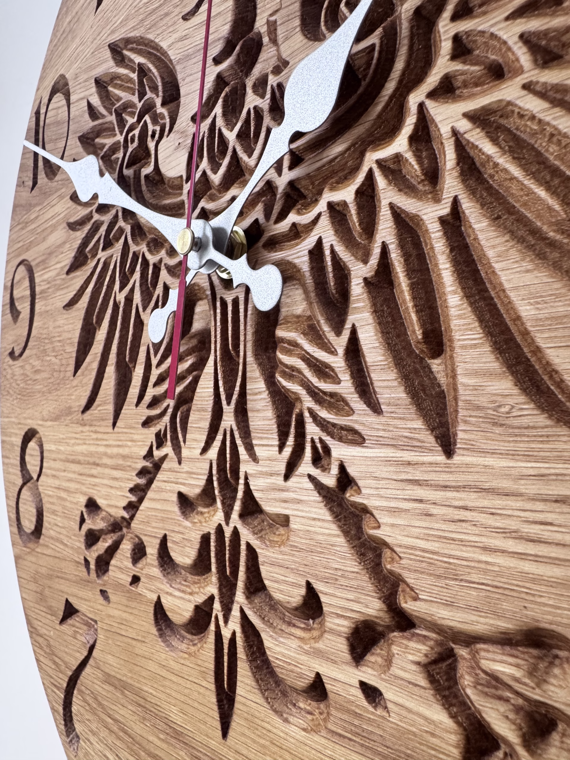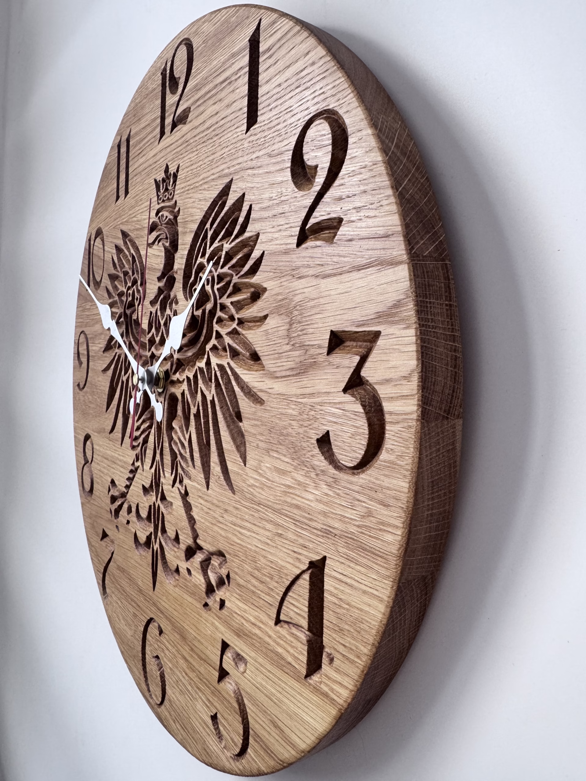 Zegar ścienny z drewna dębowego o średnicy 40 cm model Godło Polski